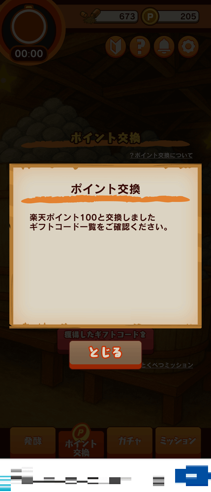 発酵を3回完了すると、ポイント交換のメニューが解放されます。