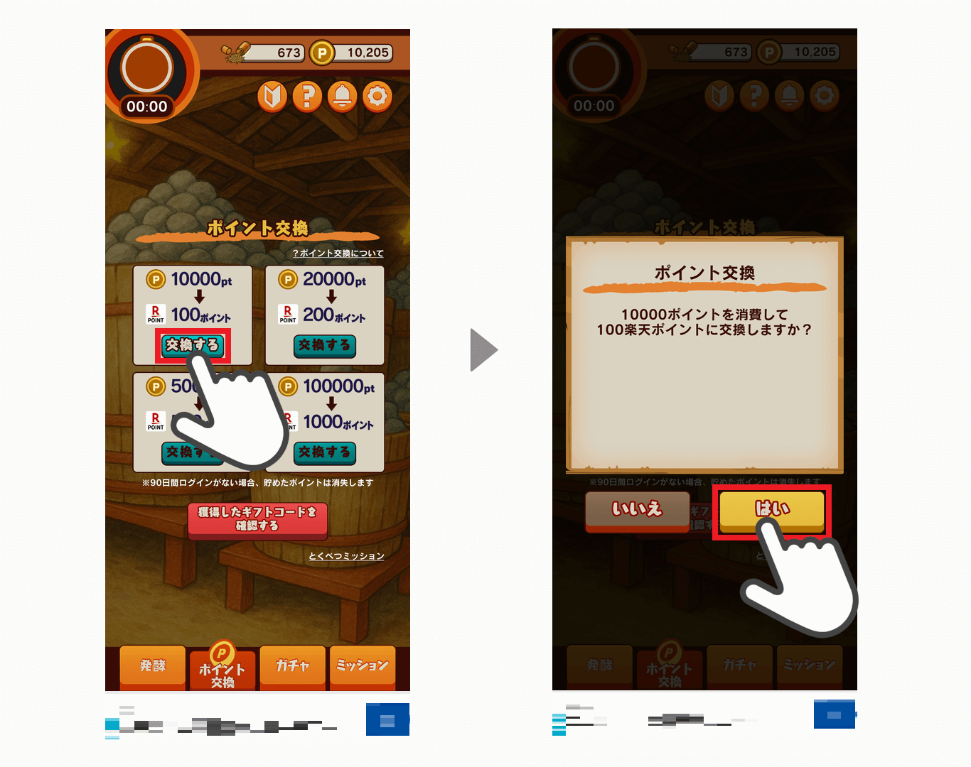 「楽天ポイントに交換しますか?」と表示されるので、「はい」をタップしてください。