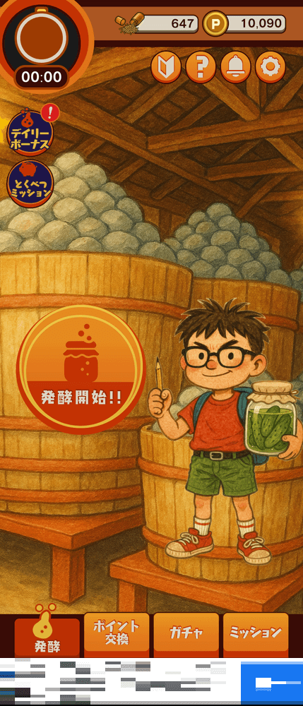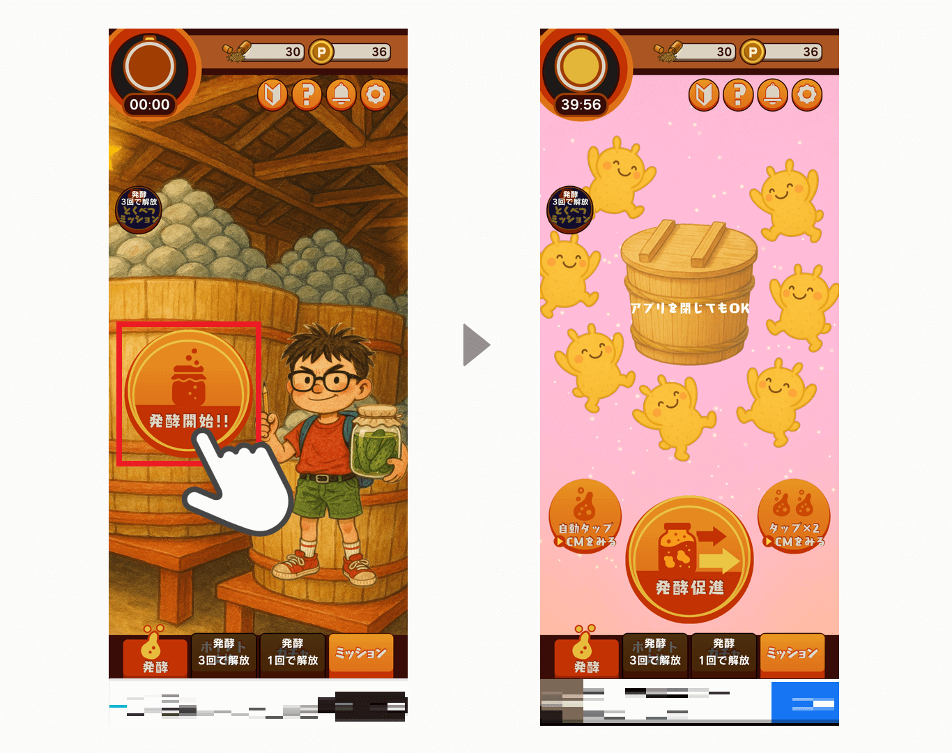 「発酵開始!!」をタップしたら、左上のカウントがゼロになるまで放置でOKです。